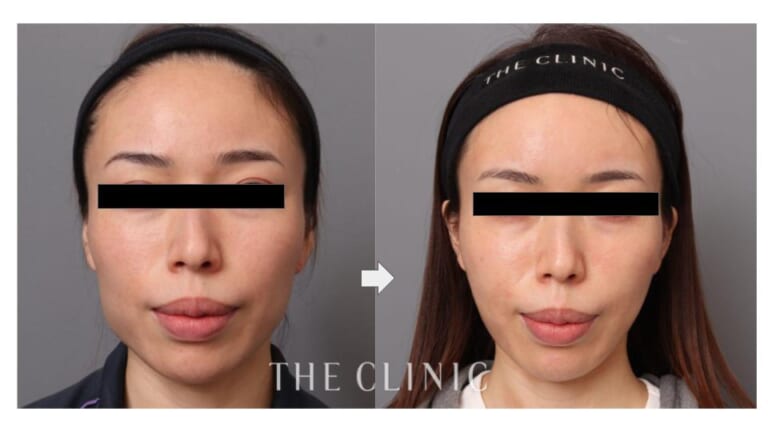 施術内容は糸 口横モフィウス ボトックス 額こめかみ 頬高さ注入